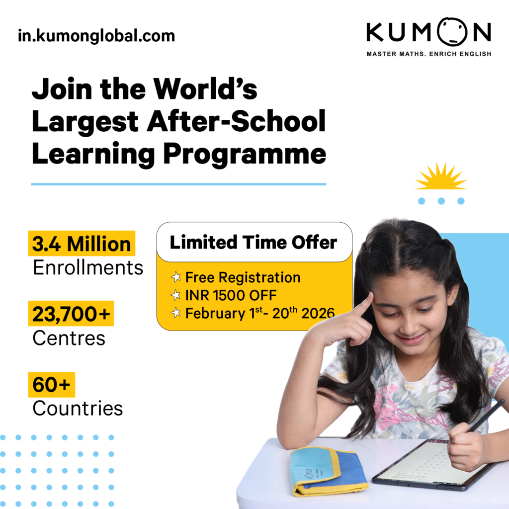Kumon Centres across India & Sri Lanka are offering Free Registration (worth ₹1500 for India & LKR 2000 for Sri Lanka) for new students in Math, English, or both!